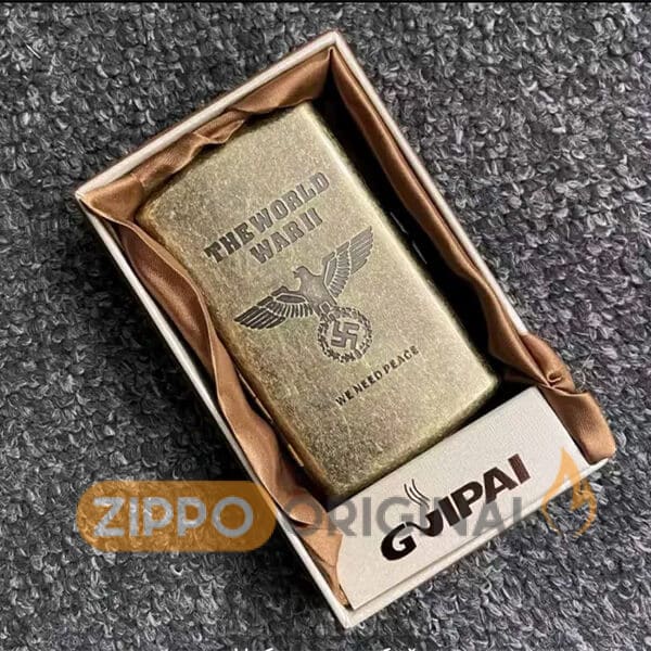 کیف سیگار برند guipai بدنه فلزی روکش طلایی انتیک – طرح جنگ جهانی المان نازی ها