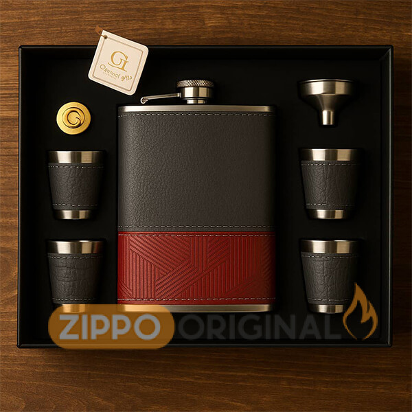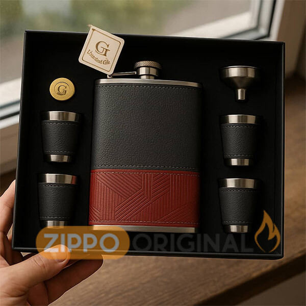 این ست شامل فلاسک با روکش چرمی مقاوم، چند عدد شات هماهنگ و قیف فلزی مخصوص است که همگی با دقت در یک جعبهی شکیل و محکم قرار گرفتهاند. روکش چرمی علاوه بر زیبایی، حس خوشدست بودن و دوام بالا را فراهم میکند و جزئیات فلزی استیل، جلوهای حرفهای و ماندگار به محصول میبخشند.