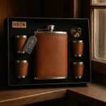 این ست شامل فلاسک با روکش چرمی مقاوم، چند عدد شات هماهنگ و قیف فلزی مخصوص است که همگی با دقت در یک جعبهی شکیل و محکم قرار گرفتهاند. روکش چرمی علاوه بر زیبایی، حس خوشدست بودن و دوام بالا را فراهم میکند و جزئیات فلزی استیل، جلوهای حرفهای و ماندگار به محصول میبخشند.