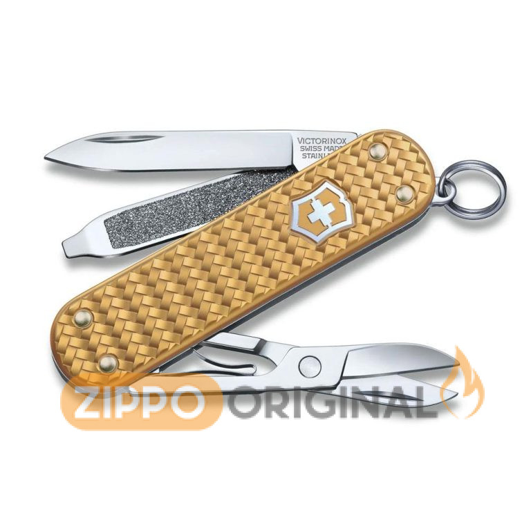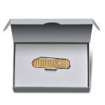 چاقوی سوئیسی Victorinox Classic SD Precious Alox مدل Brass Gold یکی از خاصترین و لوکسترین ابزارهای جیبی جهان است.