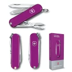 چاقوی سوئیسی Victorinox Classic SD Colors مدل Tasty Grape یک ابزار چندکاره شیک، کوچک و فوقالعاده جمعوجور است که با رنگ خاص و جذاب بنفش انگوری طراحی شده. این مدل بخشی از سری رنگی Classic SD است که با ظاهر جذاب و کیفیت افسانهای ویکتورینکس، یکی از محبوبترین انتخابها برای استفاده روزمره (EDC)، هدیه، سفر و کلکسیون بهشمار میرود.