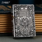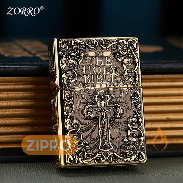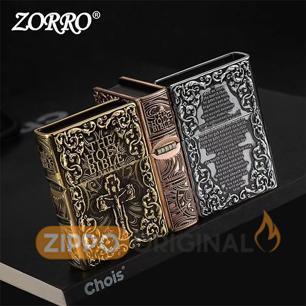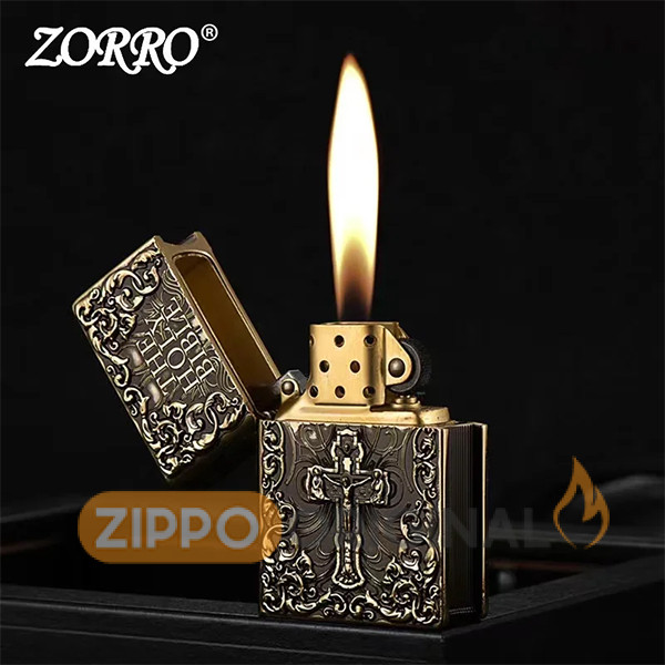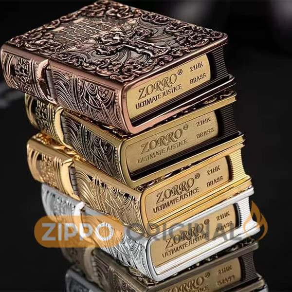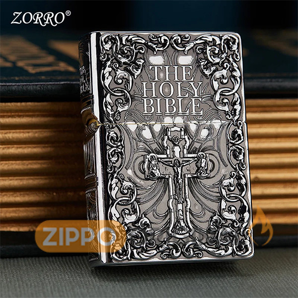 فندک بنزینی Zorro، ترکیبی از طراحی هنرمندانه و عملکرد بینقص است. بدنهی این مدل با الهام از طرح کتاب مقدس (Holy Bible) ساخته شده و با حکاکیهای ظریف و جزئیات برجستهاش، حس اصالت و شکوه را بهخوبی منتقل میکند.