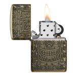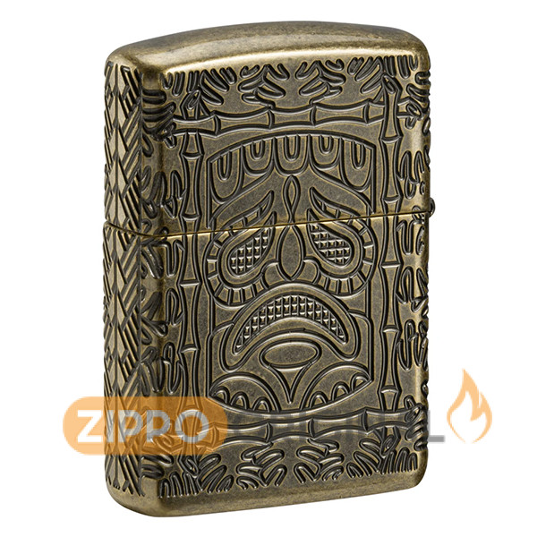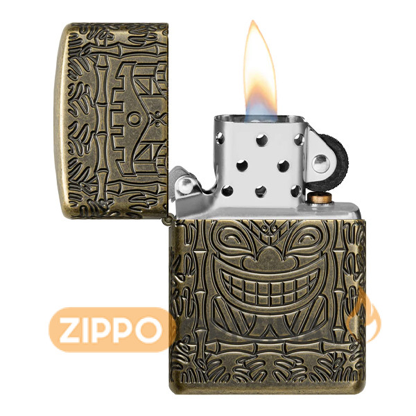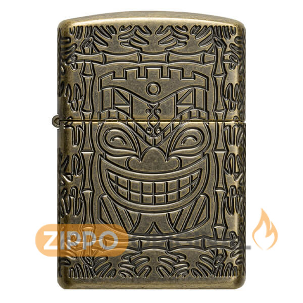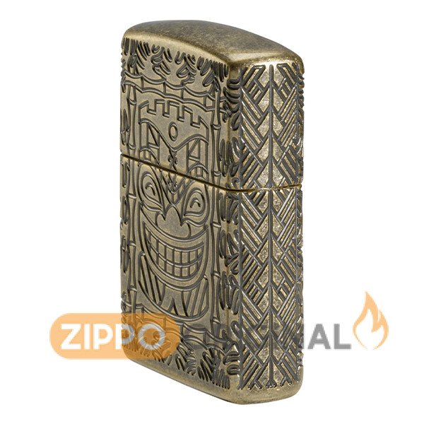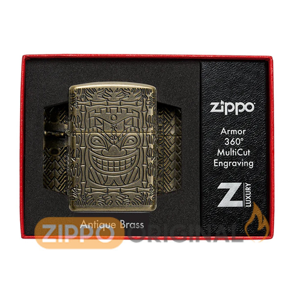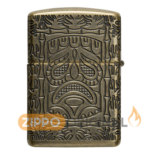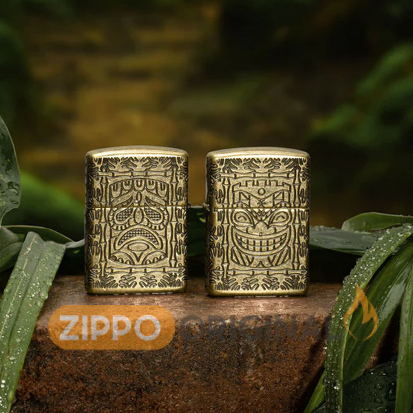 این مدل از فندکهای Armor Zippo با الهام از مجسمههای باستانی “تیکی” (Tiki) طراحی شده است.