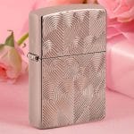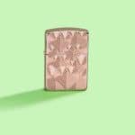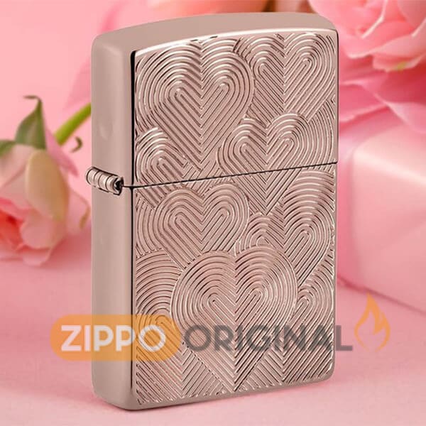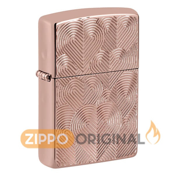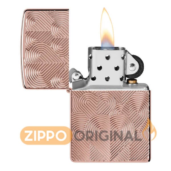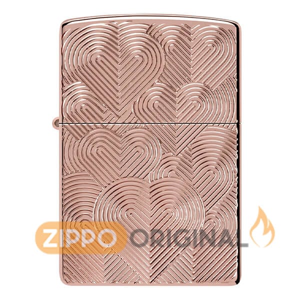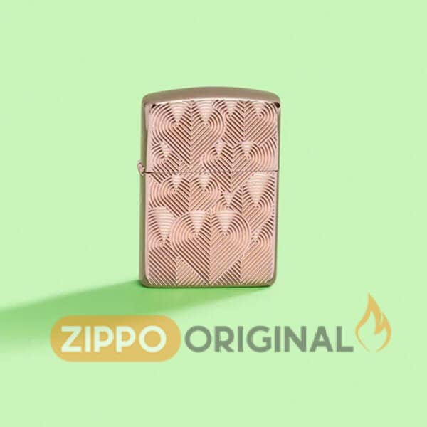 با این فندک Armor® High Polish Rose Gold عشق را بتابانید. دریایی از قلبهای متحدالمرکز در سطح فندک با طراحی بافتدار و دلنشین Deep Carve موج میزنند. در یک جعبه هدیه بستهبندی شده است. برای عملکرد بهینه، آن را با سوخت فندک Zippo پر کنید.
