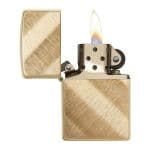 بافت مورب برنجی کلاسیک، یک پرداخت جدید و باشکوه را معرفی میکند. برسکاری جهتدار، عمق و تُنهای جدیدی به فندک برنجی میبخشد. کنارههای پرداختشدهی غلطشی، ظاهر آن را تکمیل میکنند. با یک درج طلاییرنگ برای افزایش پیچیدگی و کارایی همراه شده است. در یک جعبهی هدیه بستهبندی شده است. برای عملکرد بهینه، آن را با سوخت فندک زیپو پر کنید.