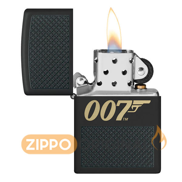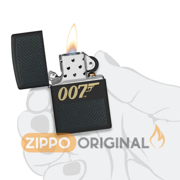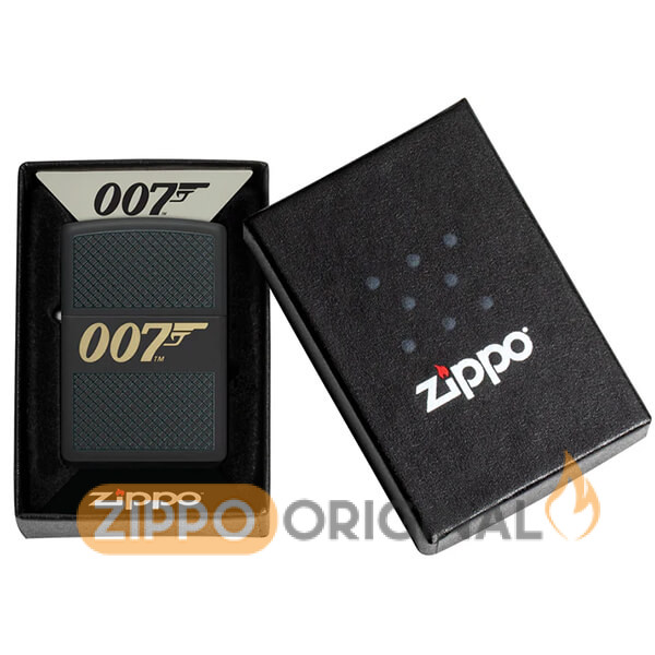 لوگوی نمادین 007™ بر روی سطح این فندک مشکی مات براق، با ترکیبی از فرآیندهای تصویر رنگی و حکاکی لیزری ما، بر روی یک پسزمینه هندسی ظریف خودنمایی میکند. در یک جعبه هدیه بستهبندی شده است. برای عملکرد بهینه، آن را با سوخت فندک زیپو پر کنید.