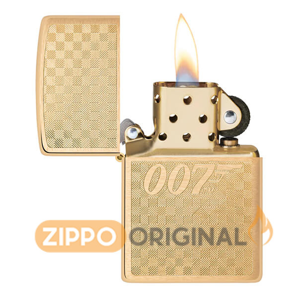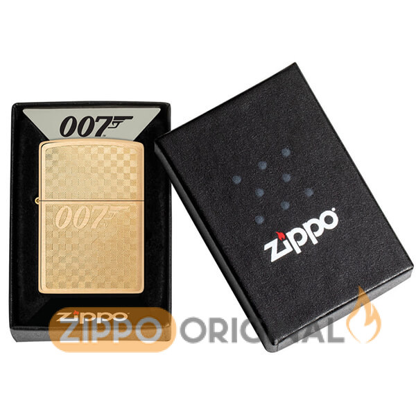 این فندک شیک و جسورانه از جنس برنج برسخورده، لوگوی نمادین جیمز باند ۰۰۷™ را بر روی یک پسزمینه شطرنجی ظریف با طراحی پیچیده Auto Engrave نشان میدهد. در یک جعبه هدیه بستهبندی شده است. برای عملکرد بهینه، آن را با سوخت فندک زیپو پر کنید.