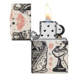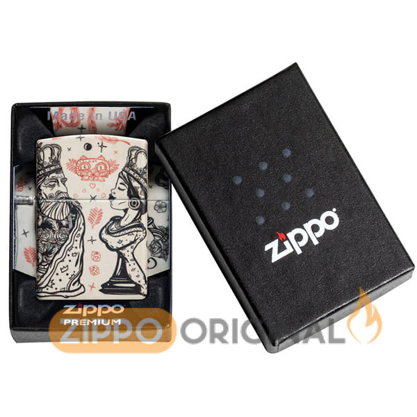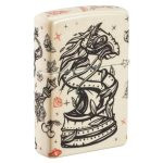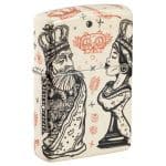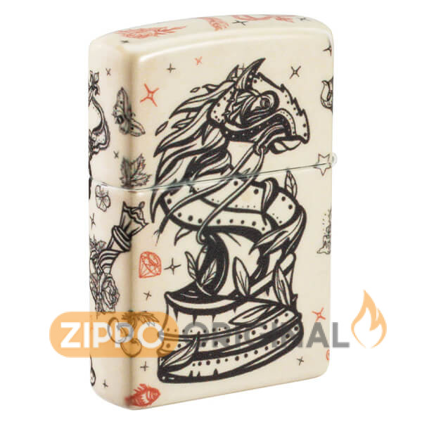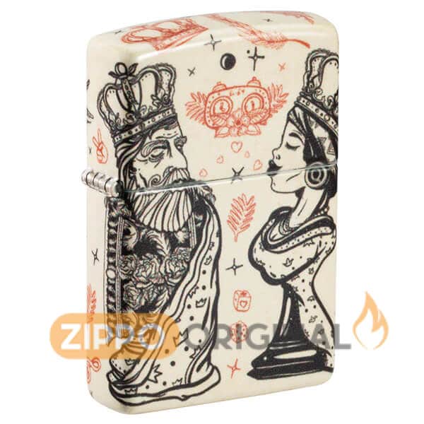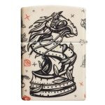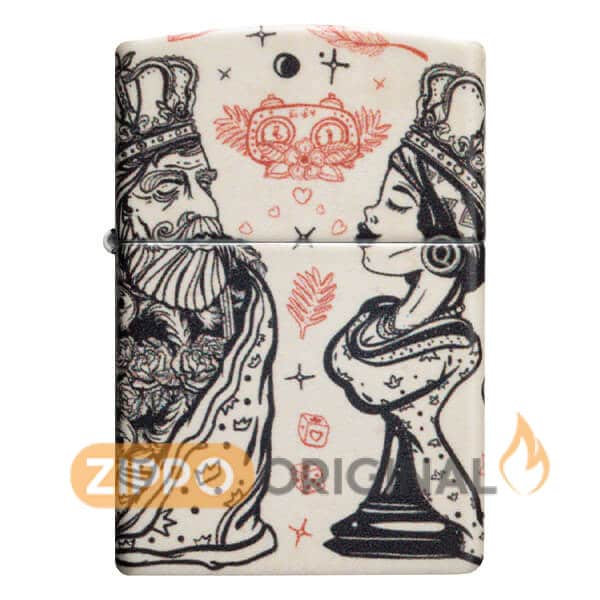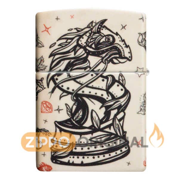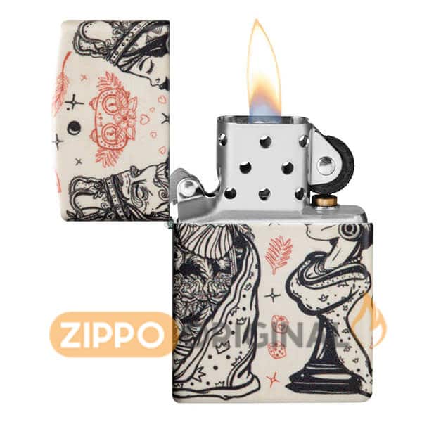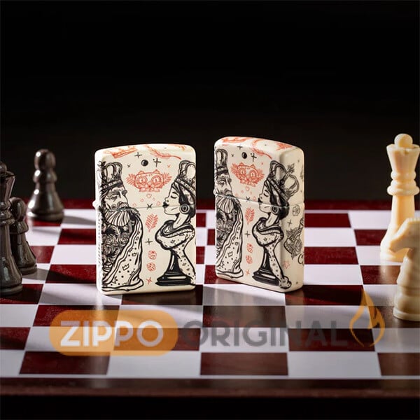 یک بازی شطرنج با این فندک خیرهکننده ۵۴۰ Color جان میگیرد. در حالی که با مهرههای بازی و گیاهان احاطه شده است، شاه و ملکه با نگاهی به هم نگاه میکنند، در حالی که یک شوالیه با طراحی عجیب و غریب و سراسری از آن محافظت میکند. در یک جعبه هدیه بستهبندی شده است. برای عملکرد بهینه، آن را با سوخت فندک زیپو پر کنید.