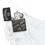 لوگوی جک دنیلز شماره ۷، درب این فندک مشکی مات کلاسیک را مزین کرده و با طرح لیزری ۳۶۰ درجه از لوگو و شعارهای این برند نمادین، زینت داده شده است. این فندک در یک جعبه کادویی بستهبندی شده است. برای عملکرد بهینه، آن را با سوخت فندک زیپو پر کنید.
