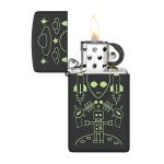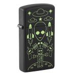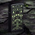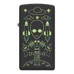 این فندک Slim® مشکی مات با آرامش از راه میرسد! انبوهی از بشقابهای پرنده، موشکها و تفنگهای لیزری، سر یک موجود فضایی شناور و یک ربات ماهگرد را در طراحی خیالانگیز Color Image احاطه کردهاند. در یک جعبه هدیه بستهبندی شده است. برای عملکرد بهینه، آن را با سوخت فندک زیپو پر کنید.